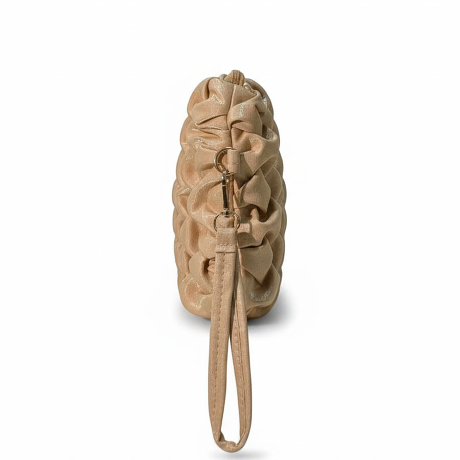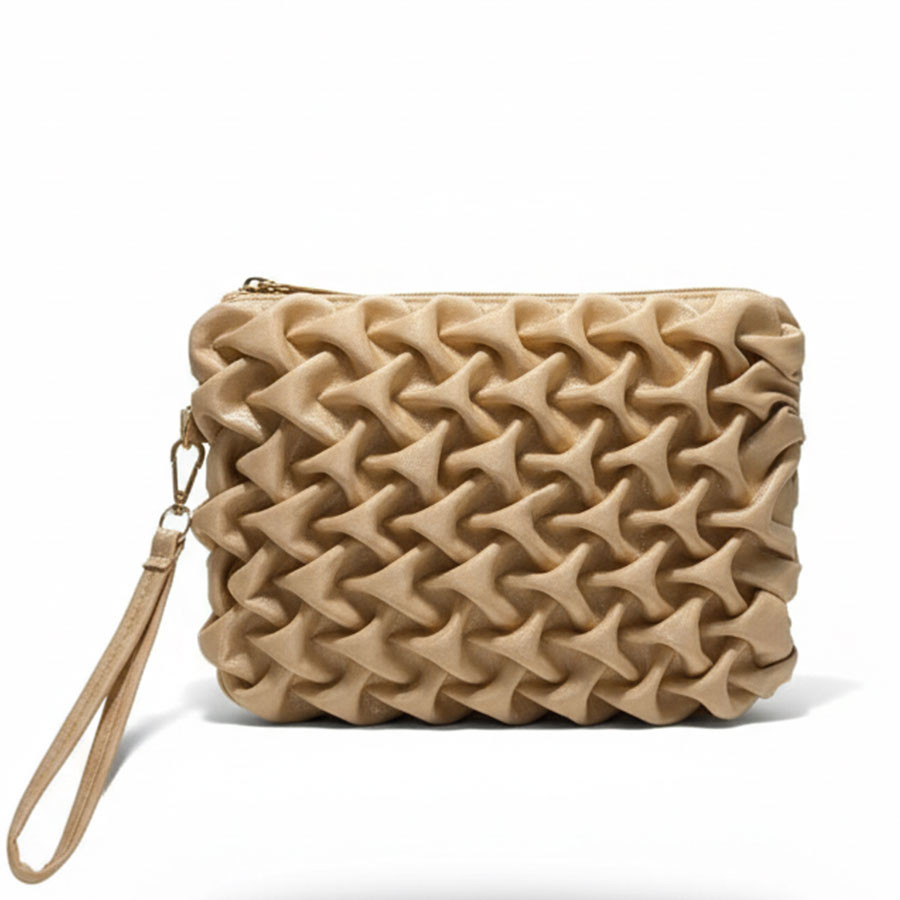 The Beige Textured Clutch is a timeless blend of elegance and simplicity. Its minimalist design makes it a versatile accessory for both daytime outings and evening occasions. Lightweight and comfortable to carry, the wrist strap offers ease and style, while the secure zip closure keeps your essentials safe