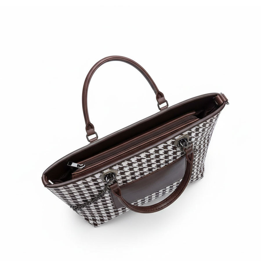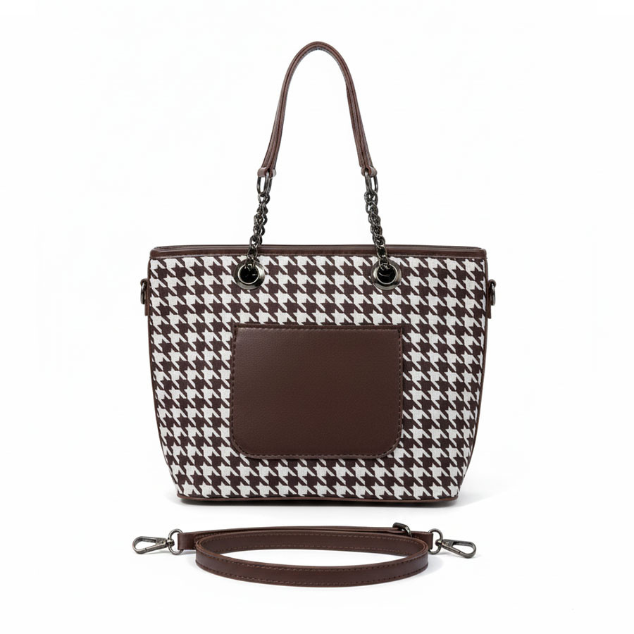 Discover the perfect blend of style and functionality with the Elegant Chain Tote. Crafted for the modern, fashion-conscious woman, this tote features a timeless classic pattern that adds a touch of sophistication to any outfit. The sleek chain handles provide a chic, contemporary edge, while the spacious interior ensures you can carry all your essentials comfortably. Whether for daily errands, work, or special occasions, this tote effortlessly complements your look, offering luxury, versatility, and practicality in one refined accessory. Elevate your wardrobe with a bag that’s as elegant as it is functional.